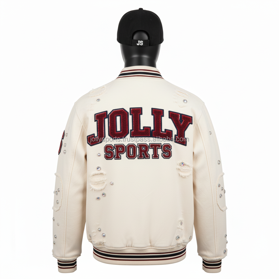 Blouson aviateur Letterman 100% polyester avec broderie personnalisée logo en satin appliqué de sororité avec lettre de la fraternité grecque pour homme