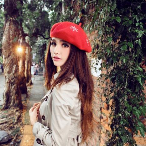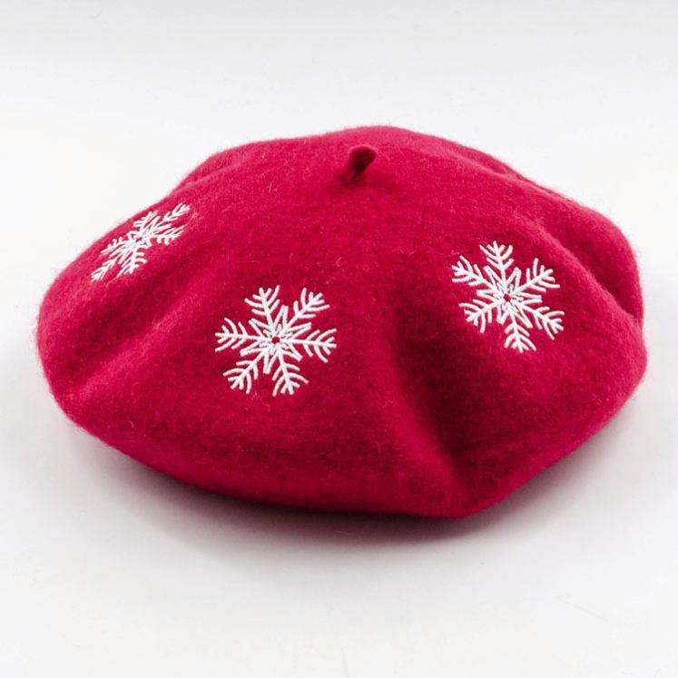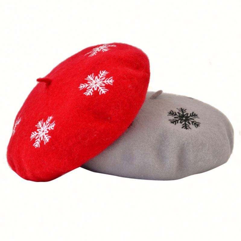 Béret d'hiver en laine pour femme, style français, vintage, mode, avec broderie personnalisée motif flocon de neige, style artiste