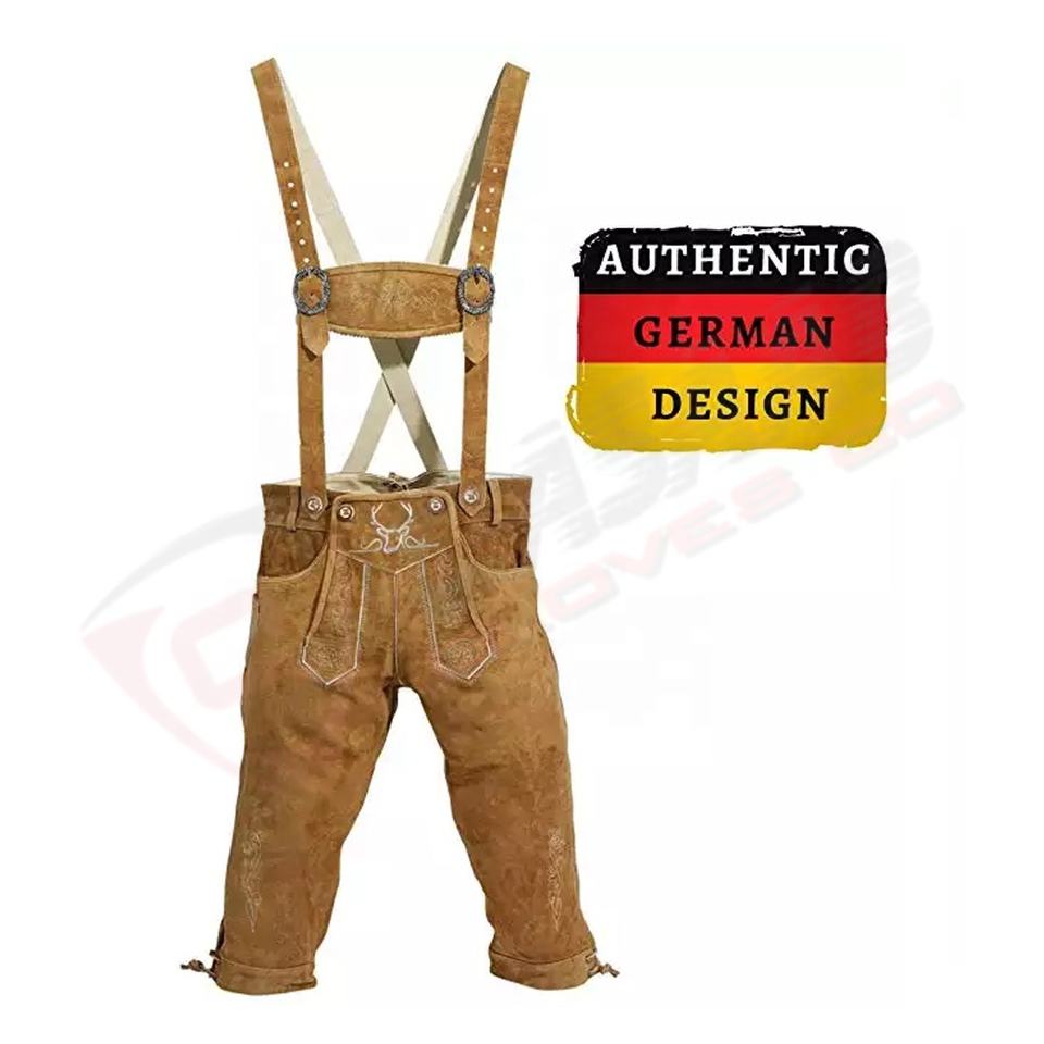 Costumes bavarois Allemands Lederhosen en cuir véritable de couleur dorée respirante légère à broderie personnalisée pour hommes