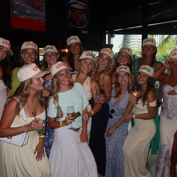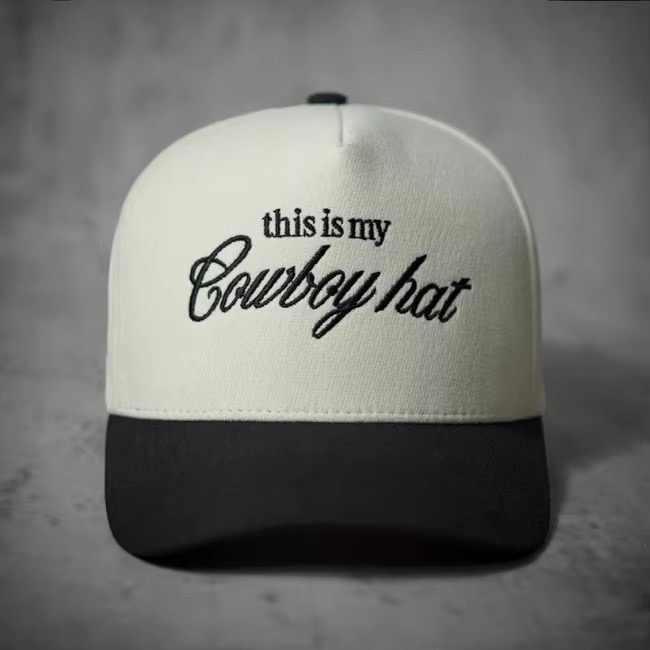 Casquettes de baseball 5 panneaux en tissu sergé de coton, logo brodé personnalisé, 2 tons, pour mariage, événement ou fête, fabrication vietnamienne.