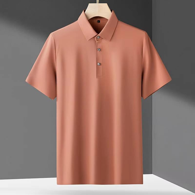 Logo brodé personnalisé nylon respirant pour hommes POLO doux à manches courtes sans trace élastique couleur unie grande taille vierge