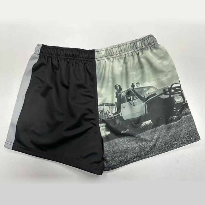 Short de football en coton brodé de logo personnalisé avec poche zippée Short de rugby en coton unisexe avec votre propre logo