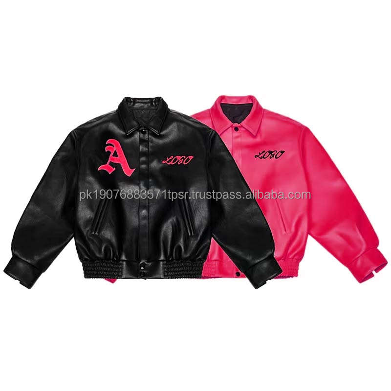 Veste bomber en cuir avec logo brodé personnalisé pour hommes