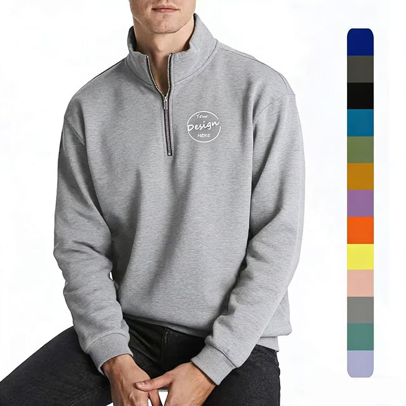 Ventes en gros de sweat-shirts à fermeture éclair quart de tour en molleton français OEM, vêtements de rue pour hommes, coupe régulière, sweat-shirt à fermeture éclair personnalisé brodé, fabricant