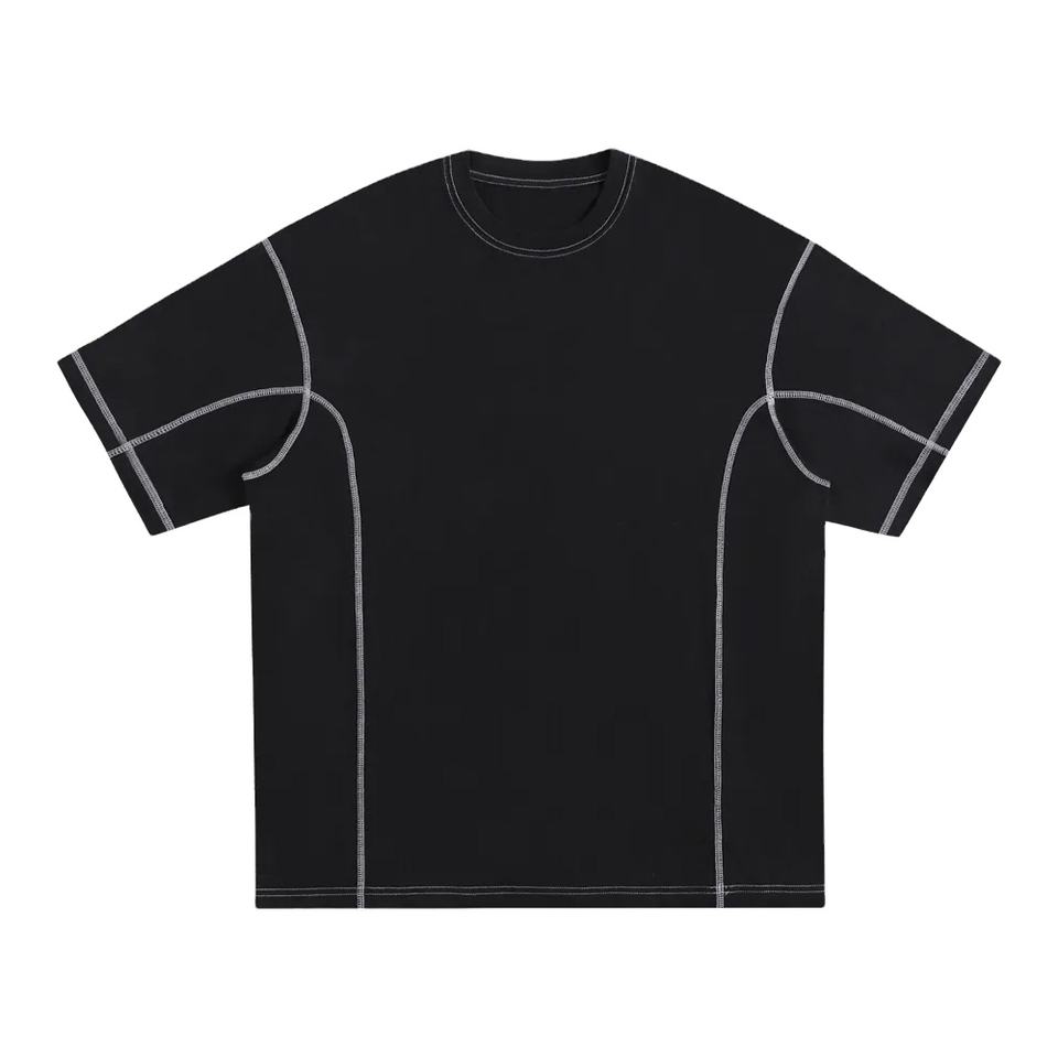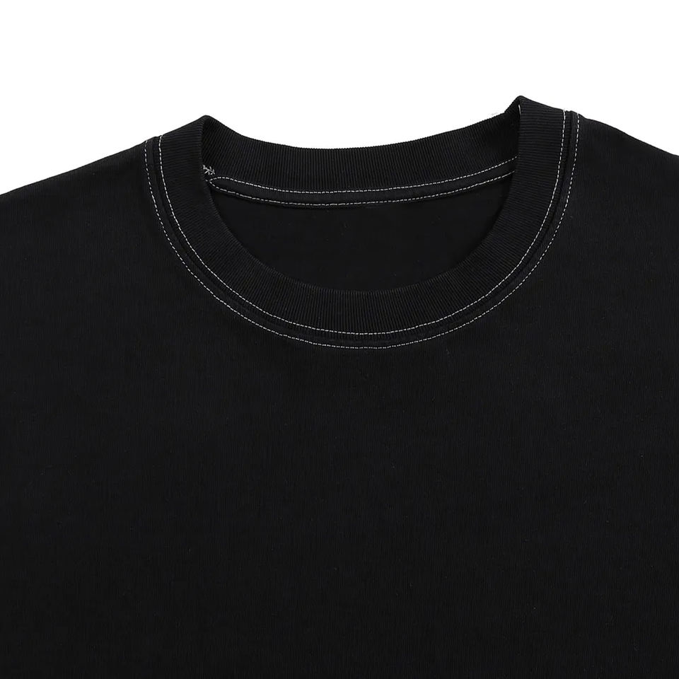 T-shirt personnalisé avec logo brodé, été, 260 GSM, 100% coton, poids lourd, contraste, streetwear, col rond, pour homme