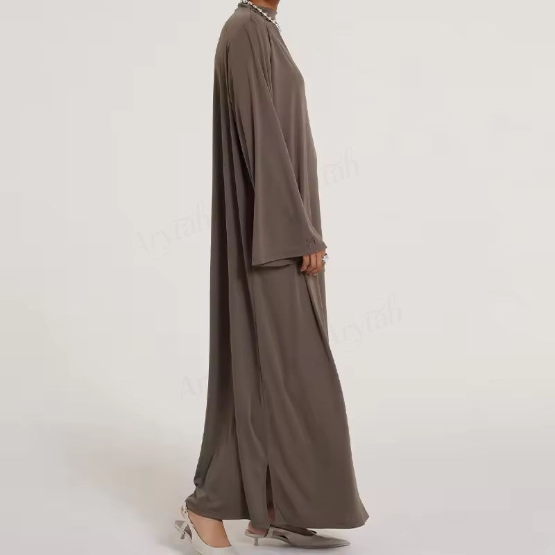 Robe maxi musulmane pour femmes avec logo brodé personnalisé, couleur unie, robe musulmane essentielle pour femmes, Eid Ramadan