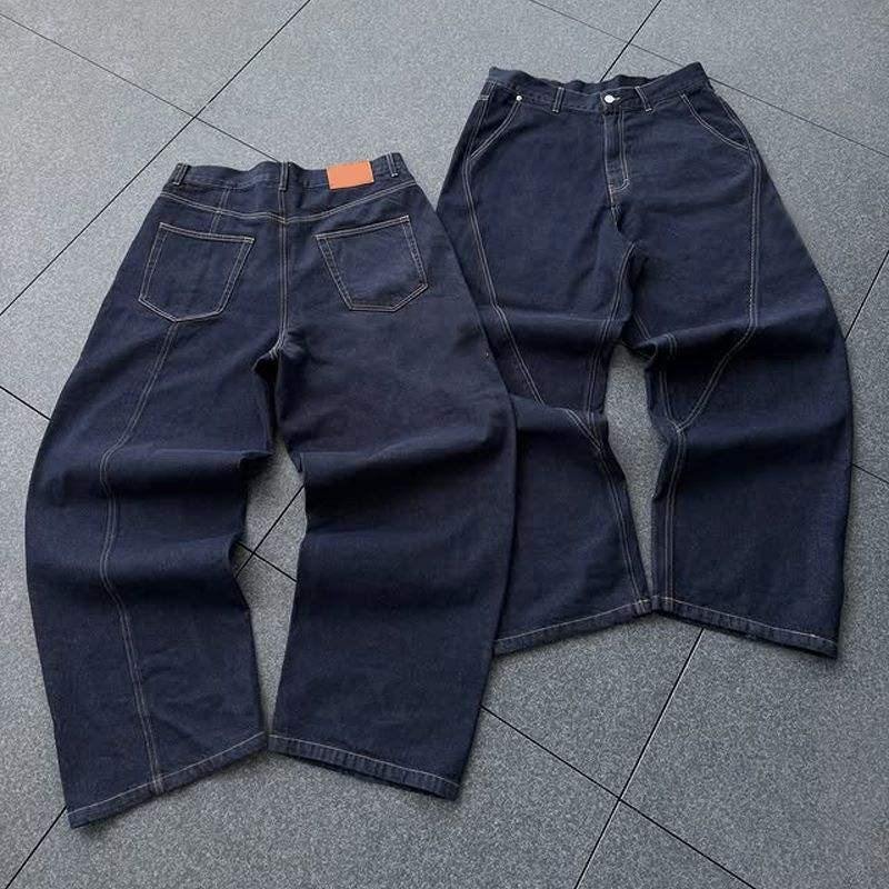 Jeans en coton surdimensionnés pour hommes avec broderie personnalisée, streetwear de haute qualité, jeans baggy à jambes larges, pantalons pour hommes