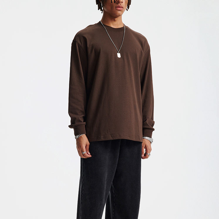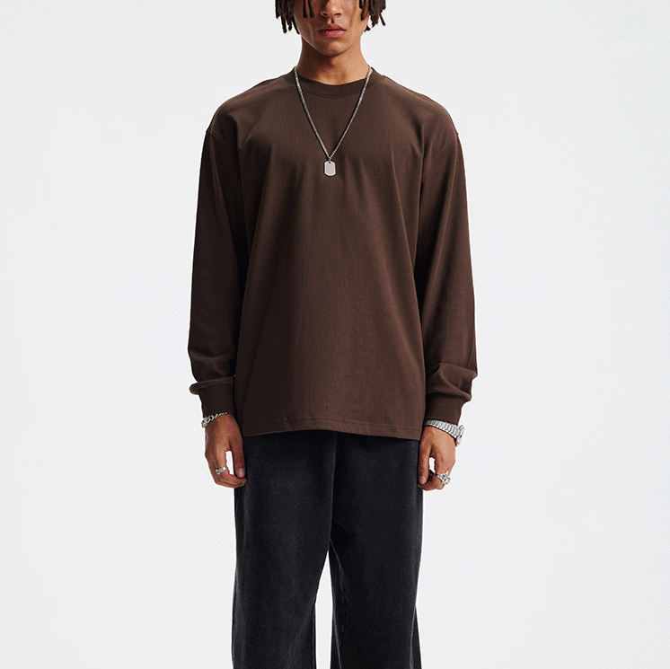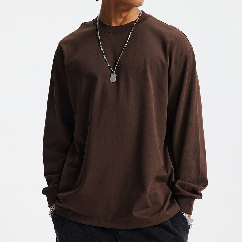 T-shirt à manches longues pour homme avec broderie personnalisée, de haute qualité, luxueux, sans poignets, à épaules tombantes, uni, surdimensionné, pour homme