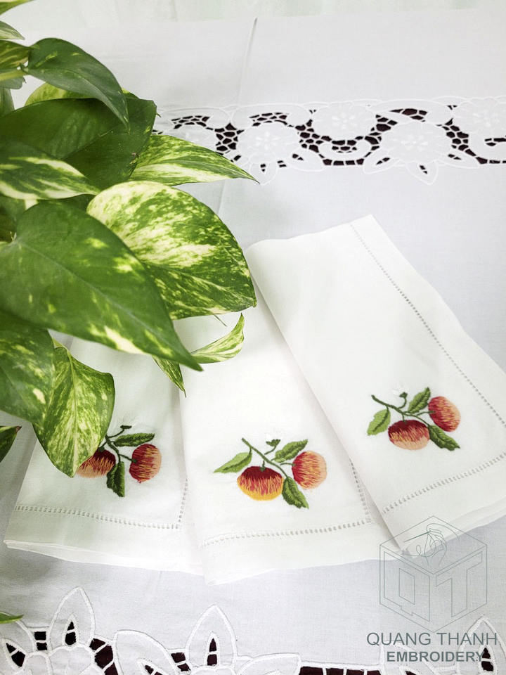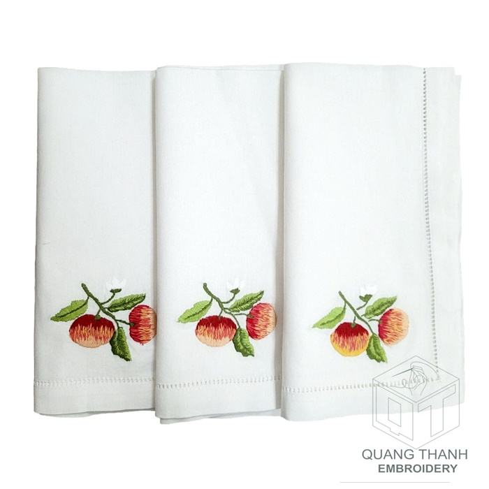 Serviette de table en coton blanc de haute qualité avec broderie personnalisée Orange Fruits Serviette de table avec ourlet pour événements hôteliers à domicile