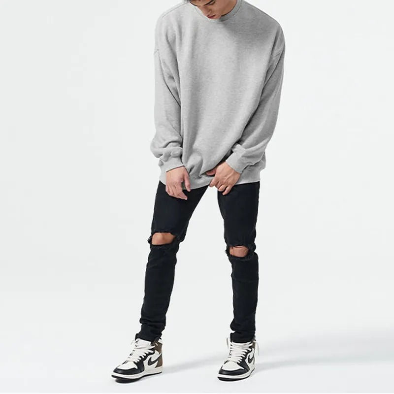 Custom Embroidery Patch Distressed Pullover Hoodie Raw Hem Heavy Weight Oversized Winter Sweatshirts Men