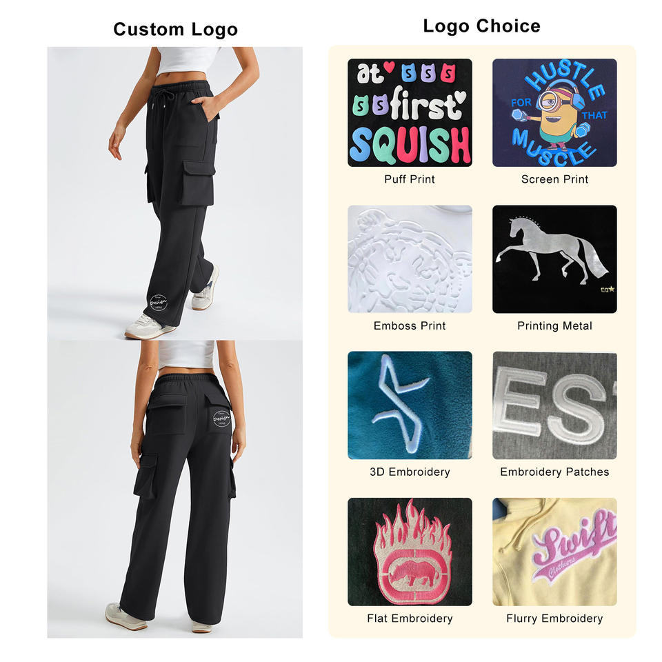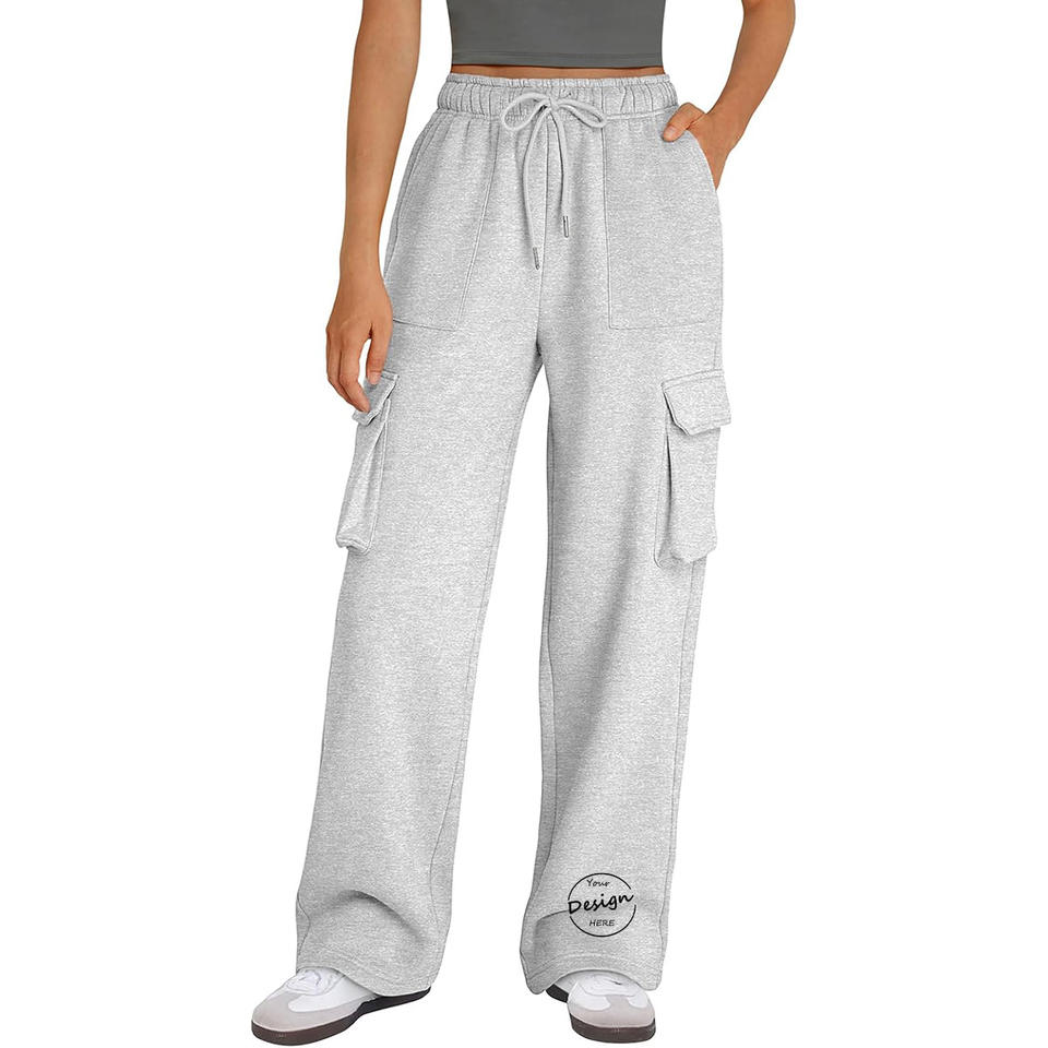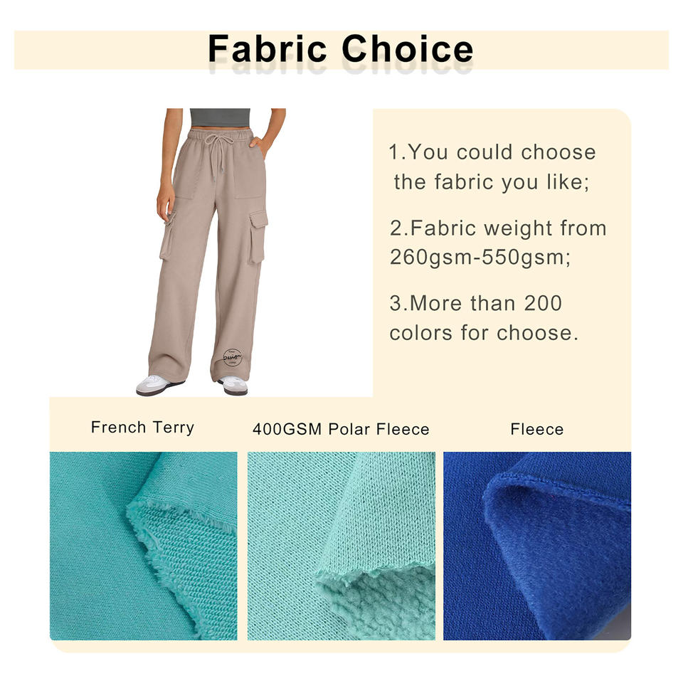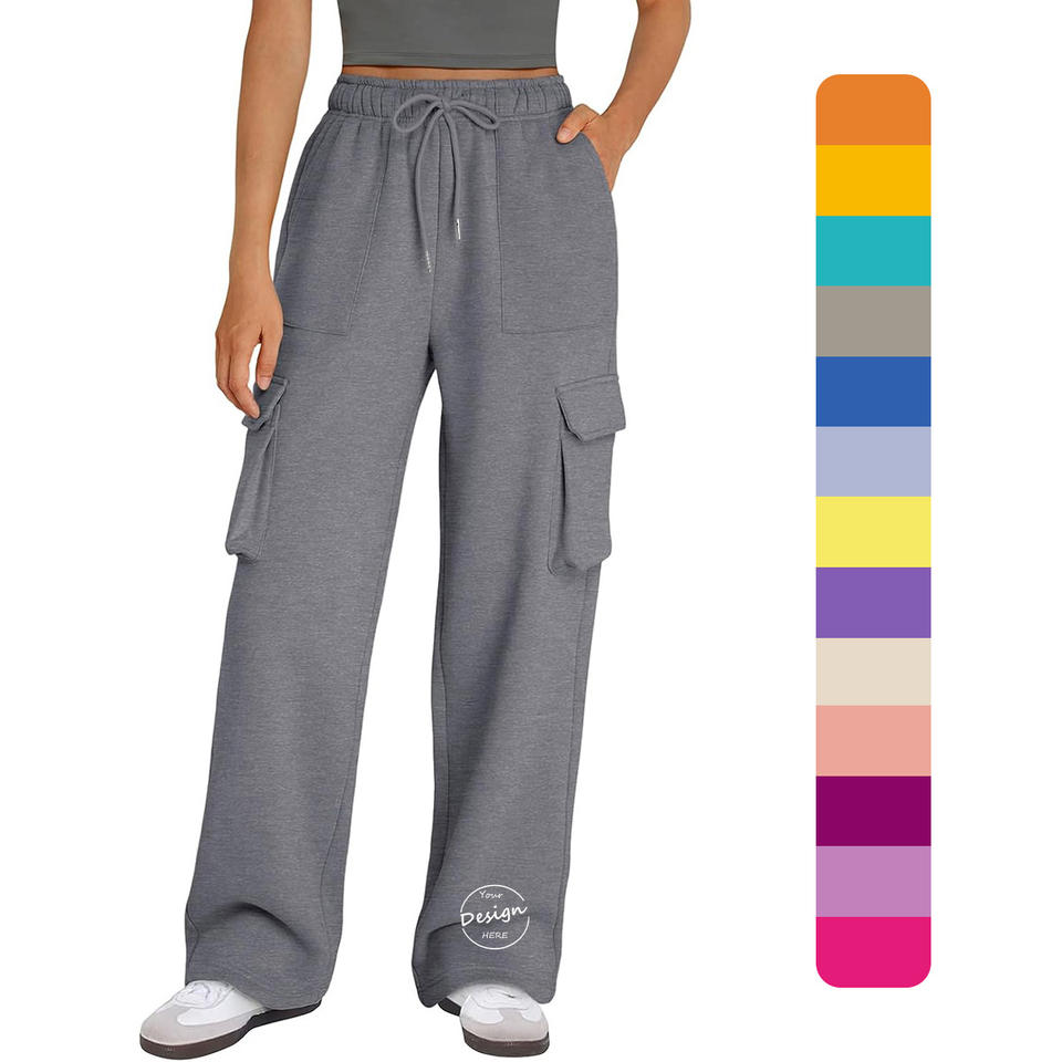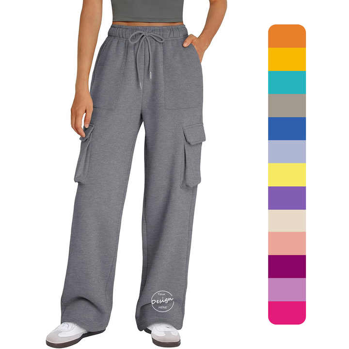 Pantalons de jogging pour femmes, taille haute, anti-boulochage, jambes larges, en molleton 100% coton respirant 310 g/m², avec patchs brodés personnalisés