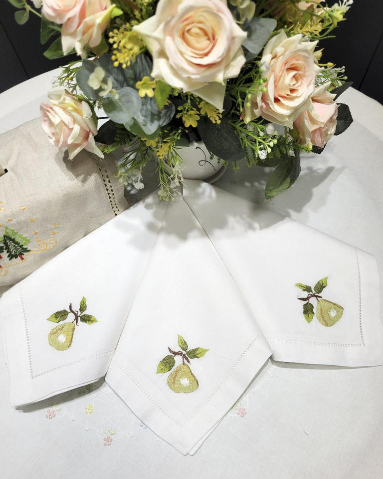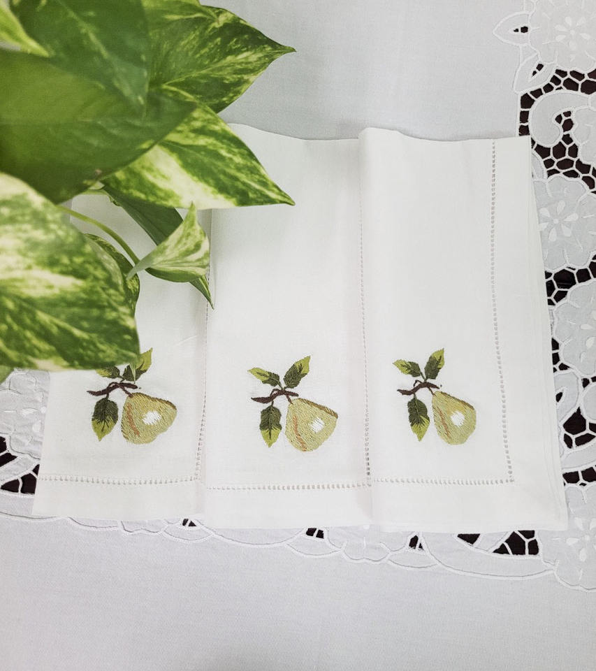 Serviette de table à broderie personnalisée poire serviette de table lavable de haute qualité en coton blanc avec ourlet pour événements hôteliers à domicile
