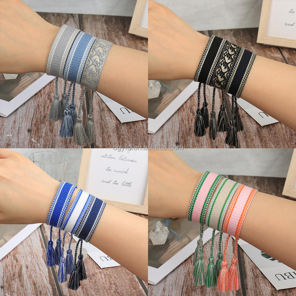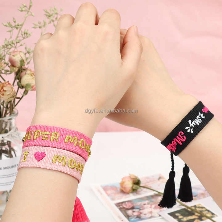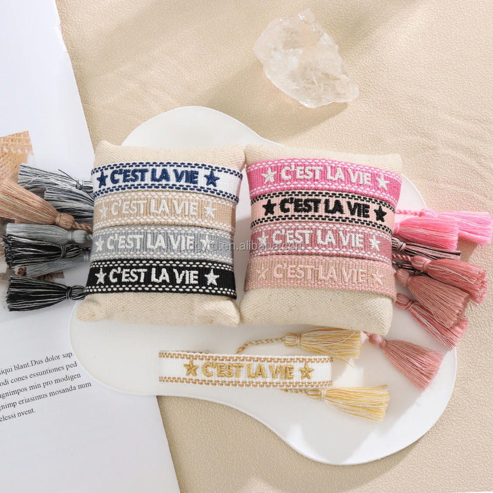 Custom Embroidery Tassel Bracelets Motivational Quote Personalized Friendship Bracelets for Women Fashion Jewelry