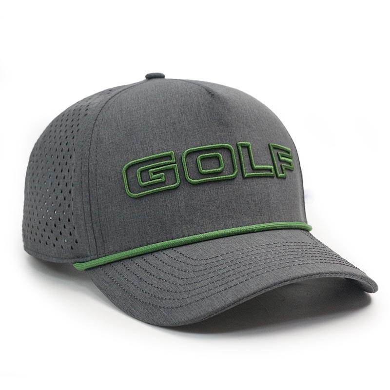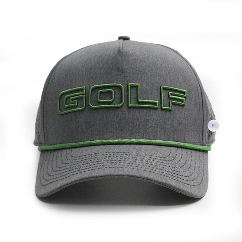 Chapeaux de camionneur brodés personnalisés 5 panneaux Golf Tour Performance coupe au laser trou maille imperméable corde chapeau de golf avec support en t
