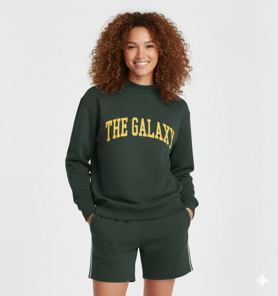 Ensemble 2 pièces pour femme : sweat-shirt à col montant en molleton de coton uni brodé sur mesure et short