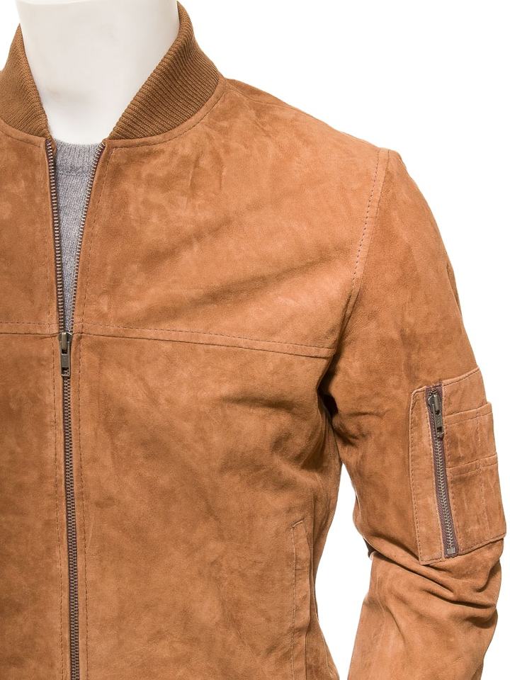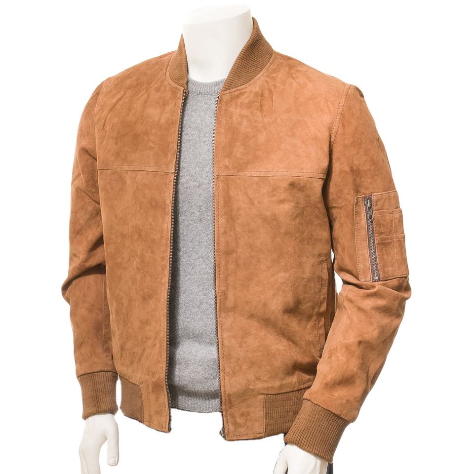 Veste bomber en cuir avec logo brodé personnalisé pour homme, veste en cuir suédé couleur tan pour homme 2026