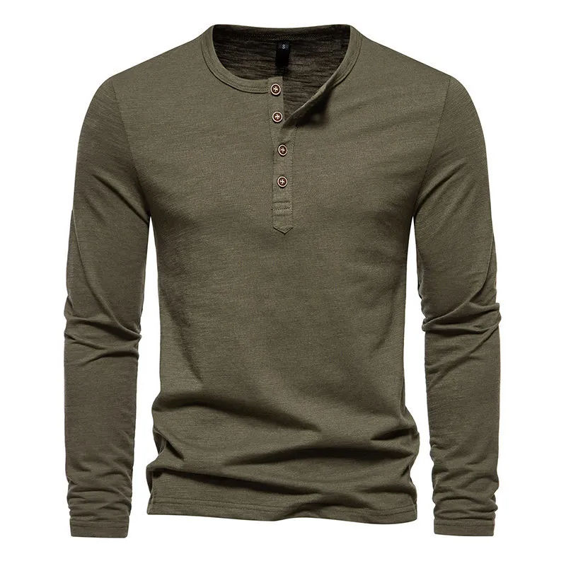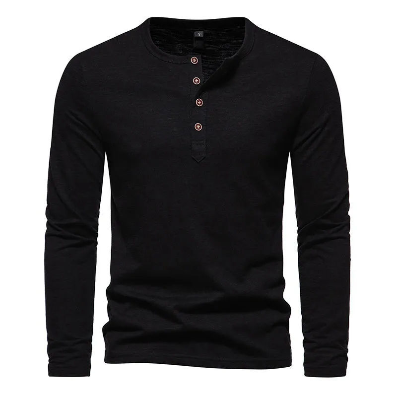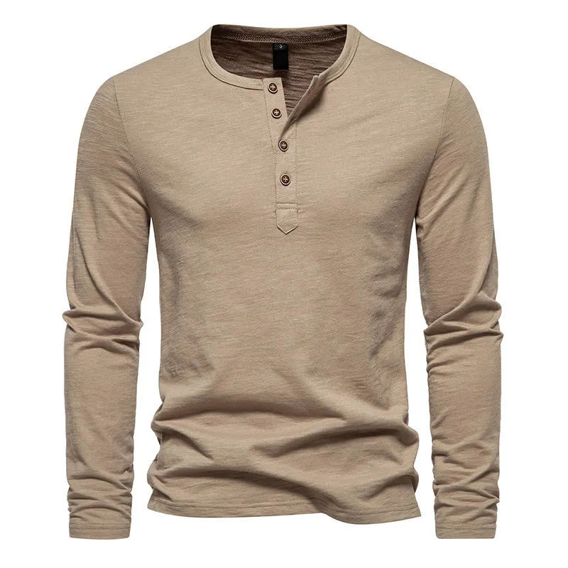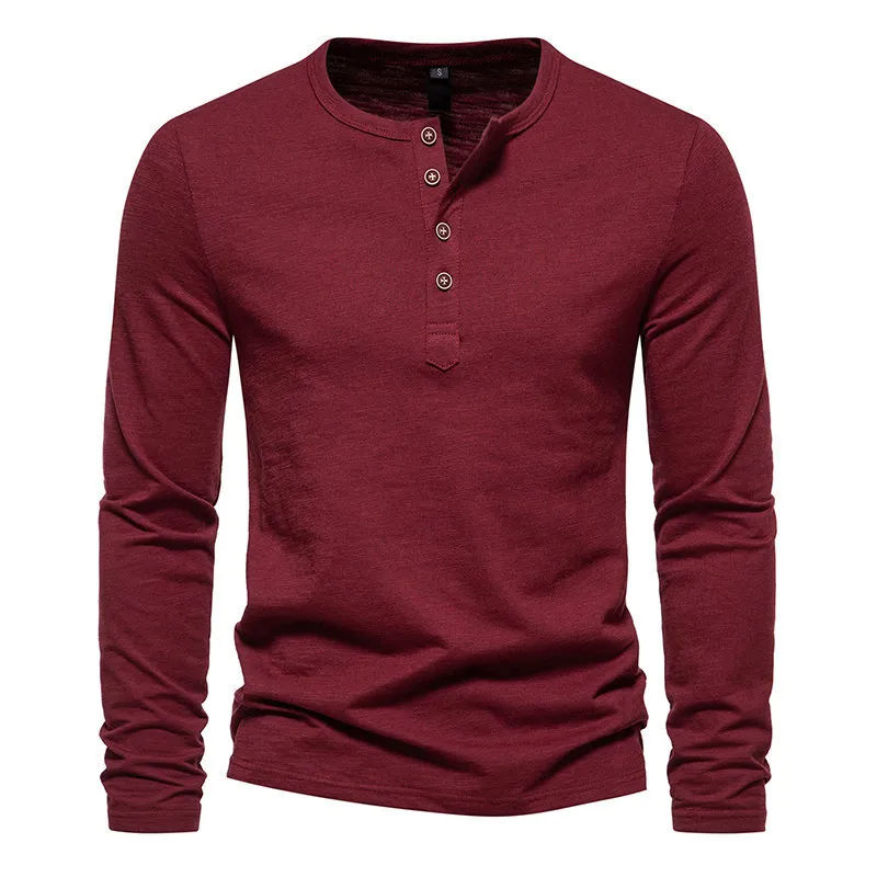 T-shirt décontracté à manches longues en polyester avec broderie personnalisée ou impression et col rond de couleur unie pour hommes