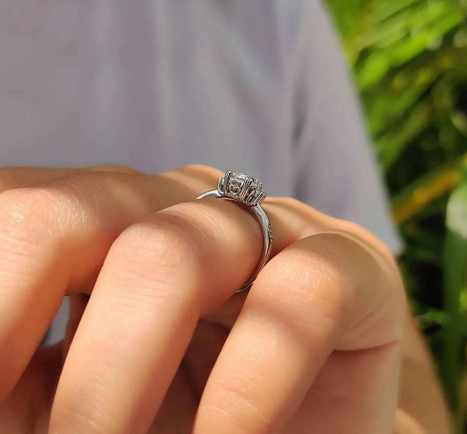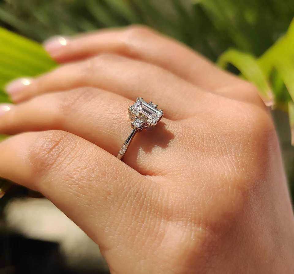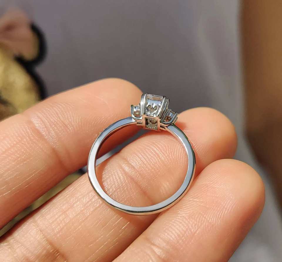 Bague de fiançailles personnalisée en moissanite taille émeraude 1 carat, or massif 18 carats, clarté VVS, sans nickel, sans plomb, directement du fabricant de bijoux