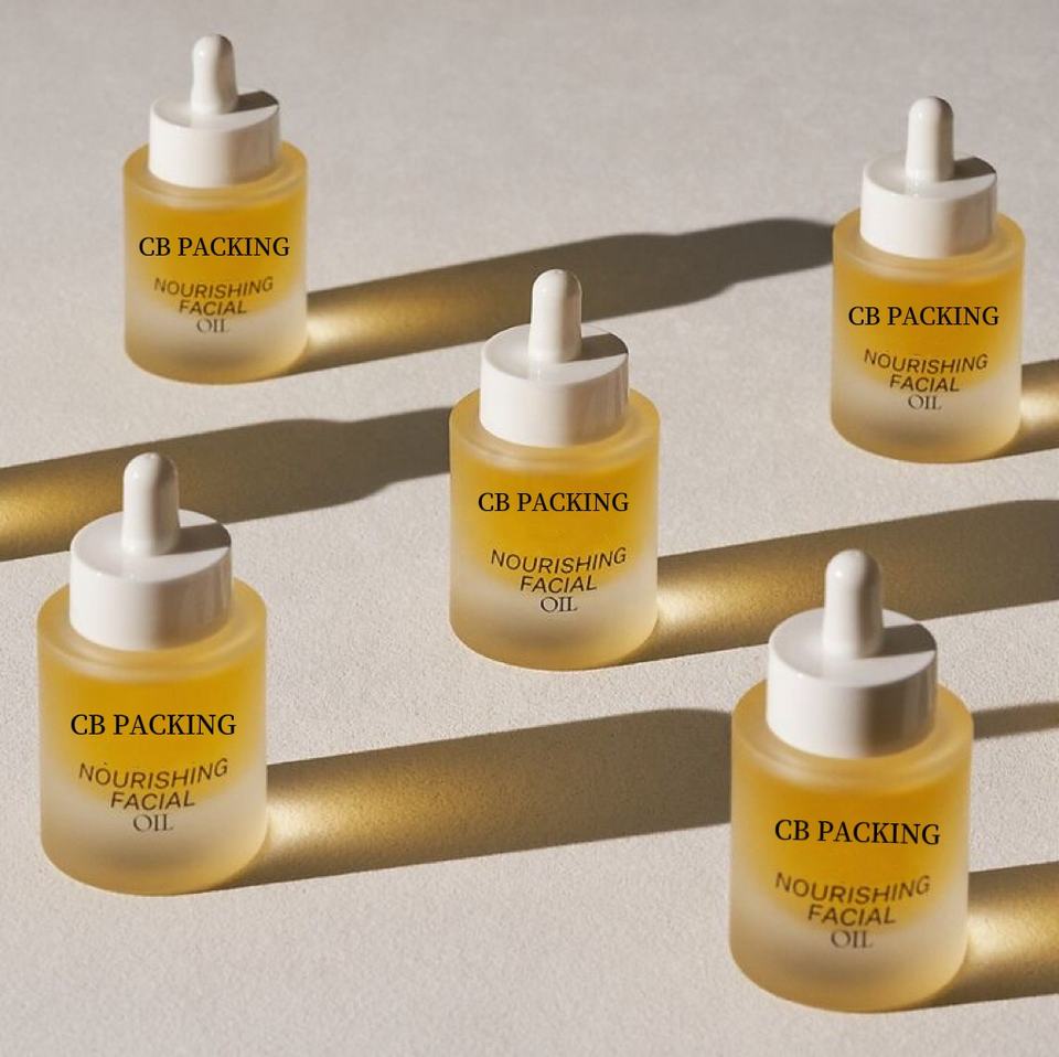 Flacon compte-gouttes en verre de luxe vide personnalisé de 30ml cylindre givré emballage cosmétique flacon d'huile de sérum à épaulement plat