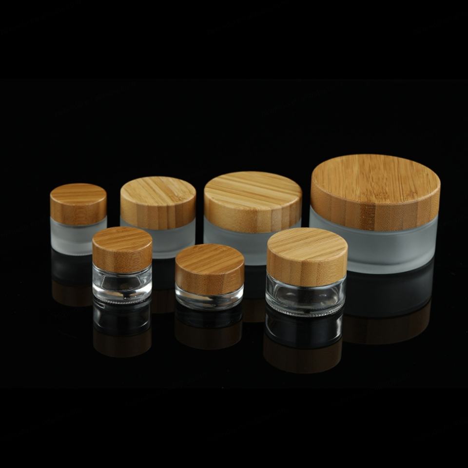 Pot cosmétique vide personnalisé en bambou 30ml 50ml 100ml, pot en verre dépoli transparent avec couvercle en bambou