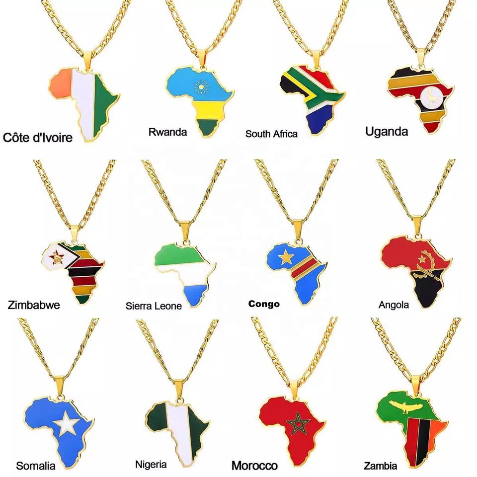 Collier personnalisé en émail avec carte du monde, collier en acier inoxydable, pendentif carte dorée pour la mode