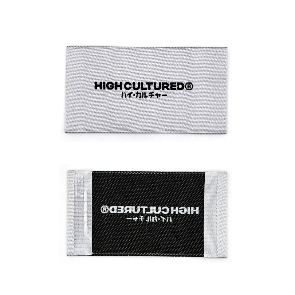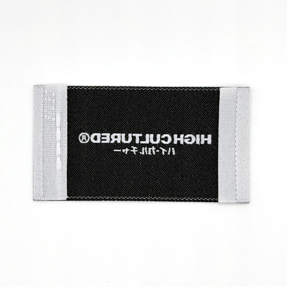 Étiquettes tissées personnalisées en damassé avec bord découpé au laser, lavables, toucher premium pour marque avec détails fins