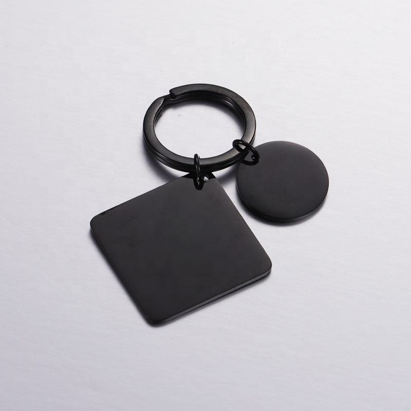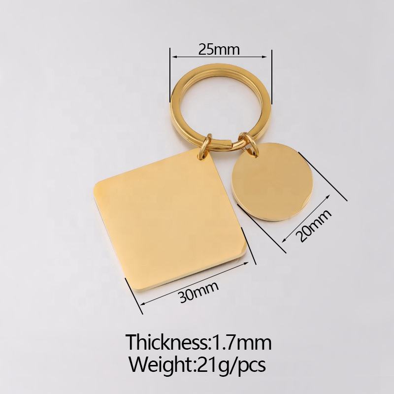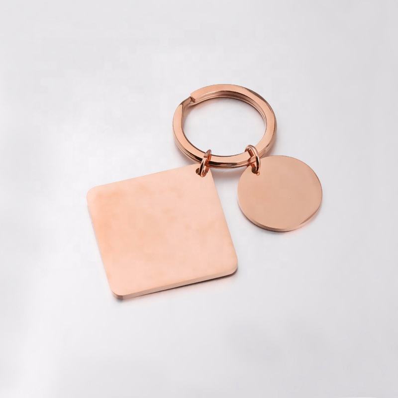 Porte-clés en acier inoxydable à graver sur mesure Porte-clés en métal tendance Logo laser en or rose argenté de forme circulaire carrée