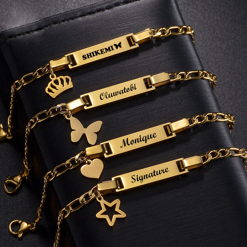 Bracelet personnalisé gravé en acier inoxydable plaqué or 18 carats pour enfants, bracelet unisexe tendance, bracelet chaîne cubaine, bracelet barre d'or pour enfants