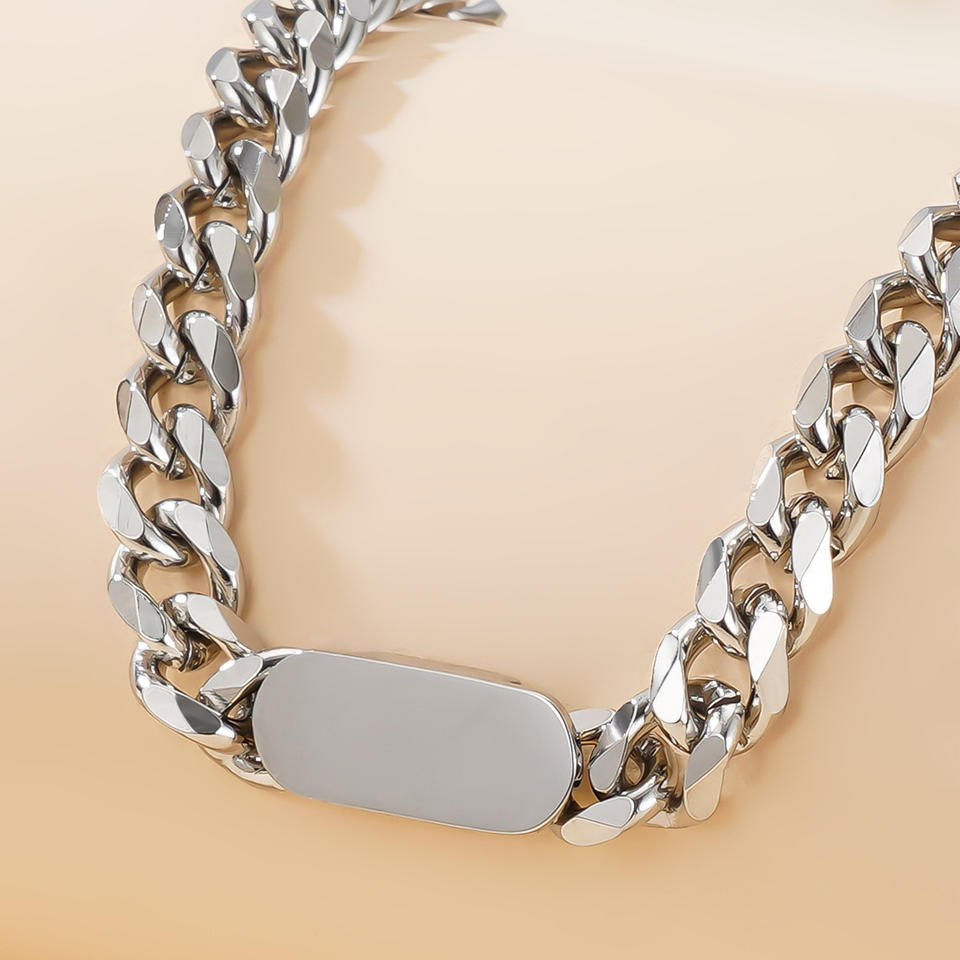 Ensemble de bijoux en acier inoxydable avec collier et bracelet à maillons cubains gravés sur mesure pour femmes et hommes
