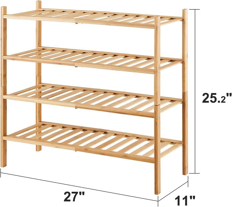 Meuble d'entrée personnalisé : Organisateur de chaussures peu encombrant, étagère à chaussures en bambou à 4 niveaux pour coin d'entrée ou salon