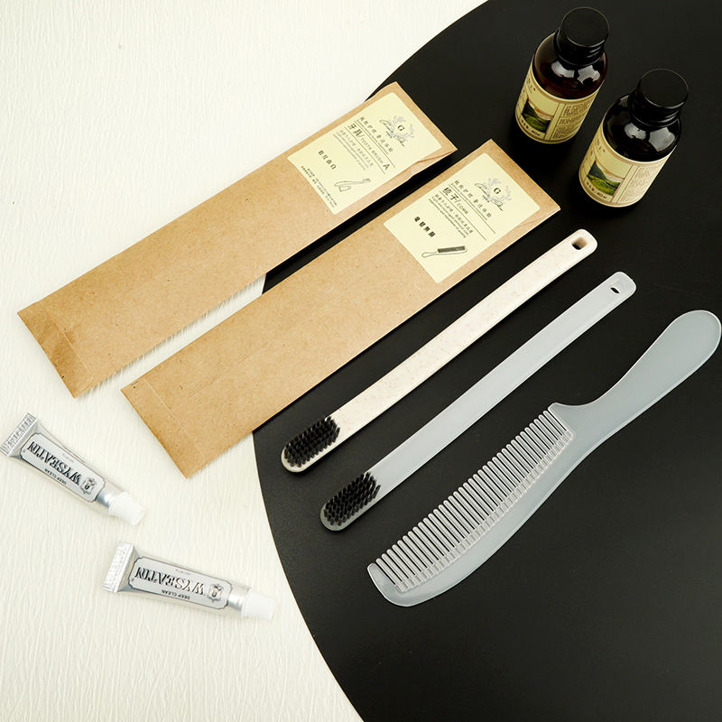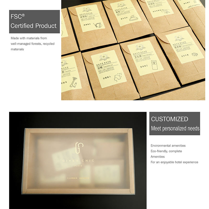 Pochette d'enveloppe personnalisée, ensemble d'articles de toilette écologiques pour hôtel, brosse à dents, savon, lessive en poudre pour les voyages