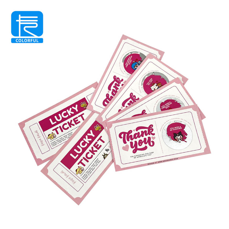 Papier écologique personnalisé bon de loterie papier à gratter billets de loterie carte de gain