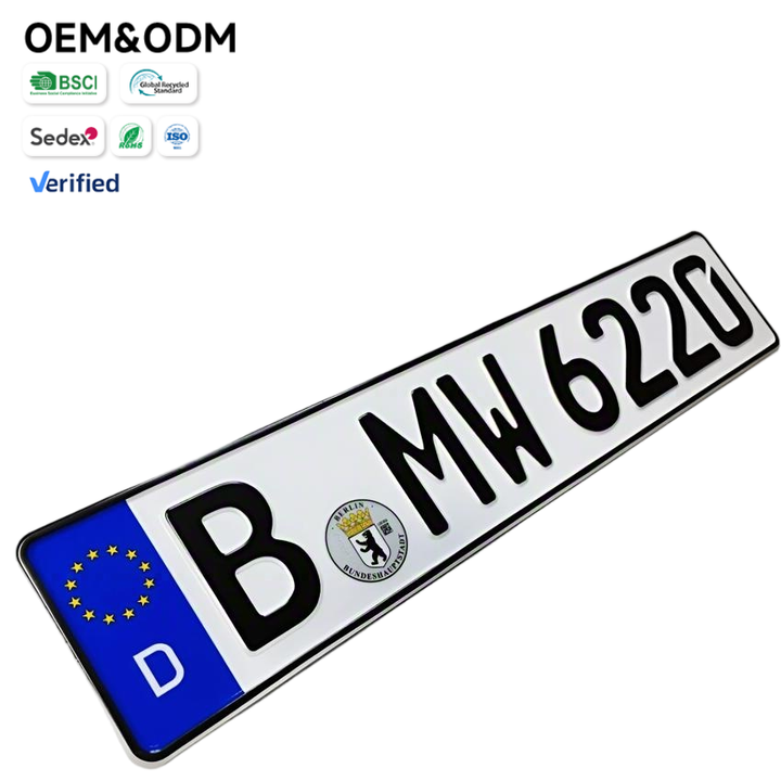 Plaque d'immatriculation personnalisée de style européen, norme allemande, Berlin, échantillon gratuit, faible MOQ pour véhicules, plaque d'immatriculation sur mesure