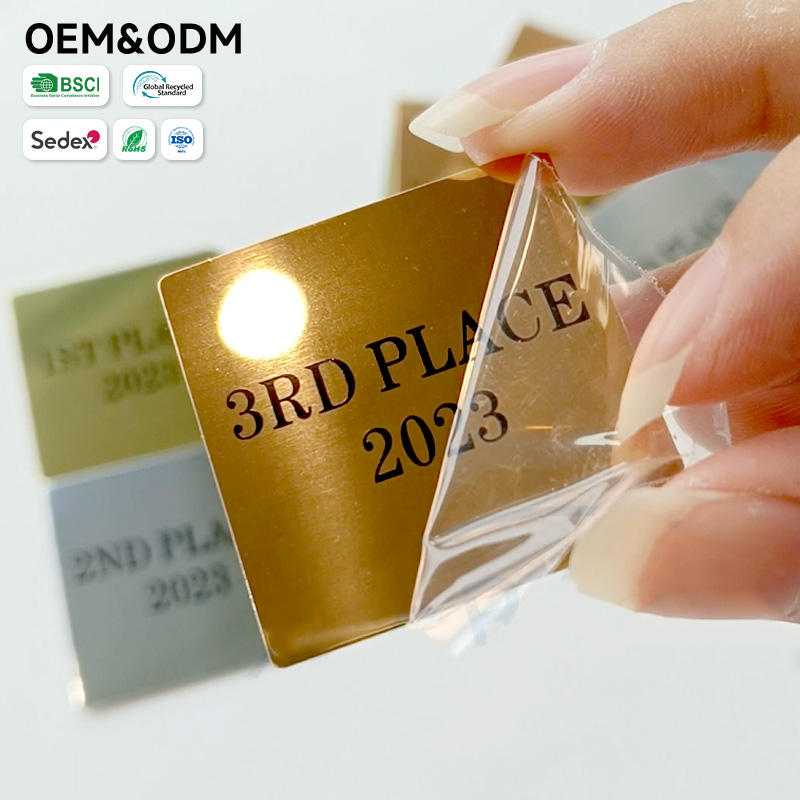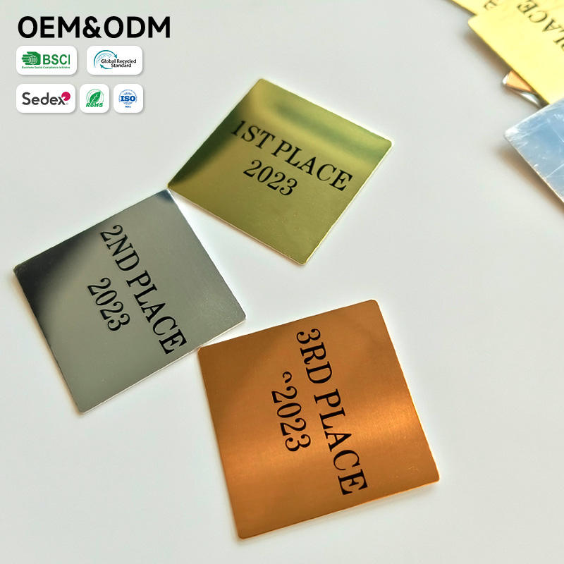 Trophée personnalisé pour événement, plaque en aluminium poli gravée au laser, nom personnalisé sur miroir adhésif