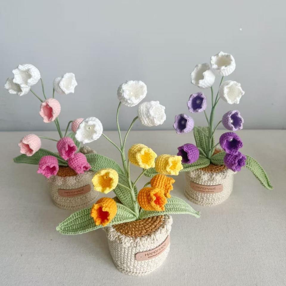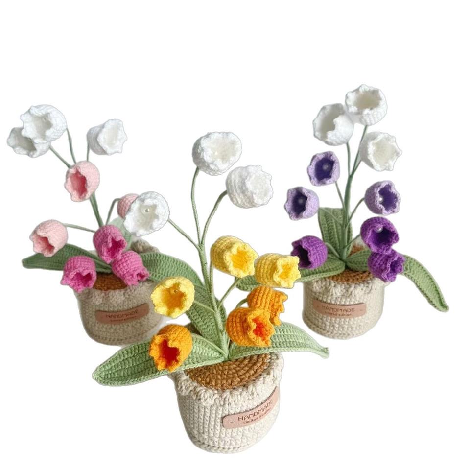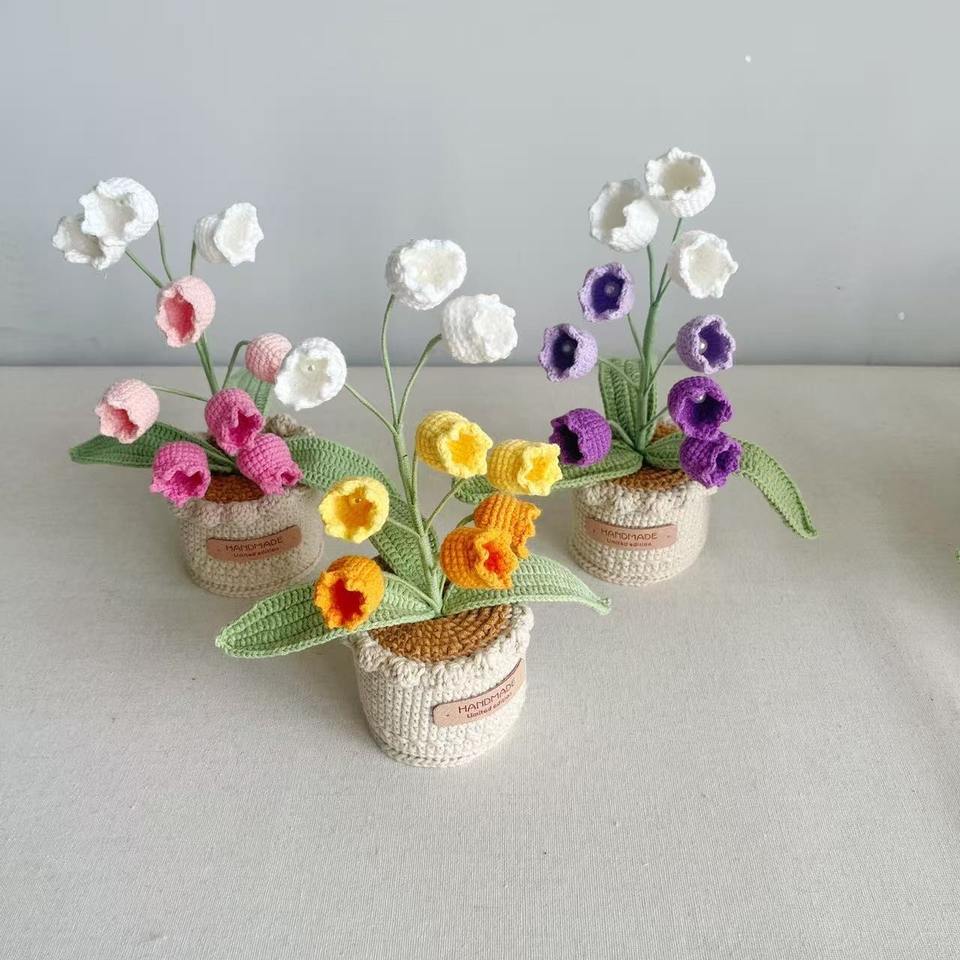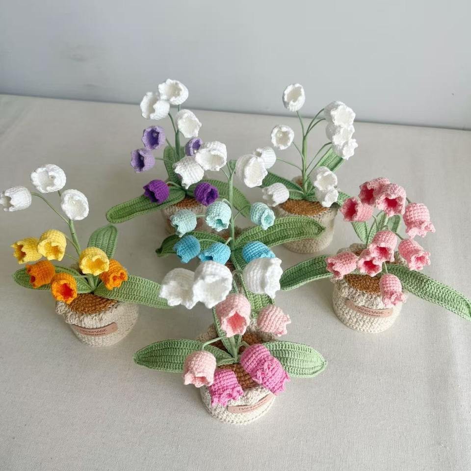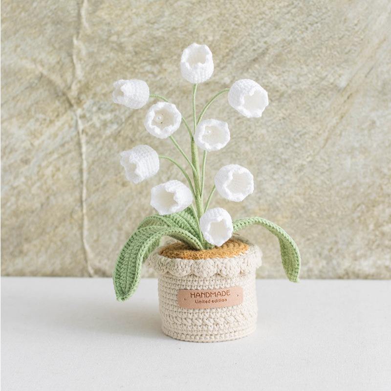 Ornement de bureau en pot, fleur artificielle de muguet au crochet, faite main avec fil exquis, plante en pot finie
