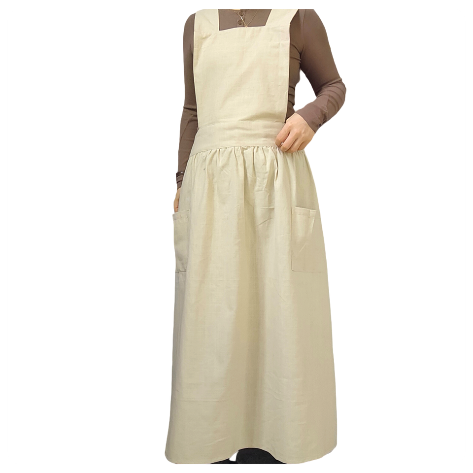 Tablier en lin extra-long personnalisé pour fleuristes et boulangeries, style japonais avec impression personnalisable et bretelles élargies