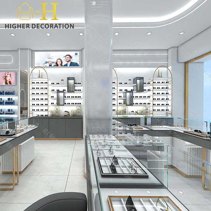 Vitrine de lunettes personnalisée Vitrine de lunettes Optique Décoration de magasin Vitrine en verre avec lumière
