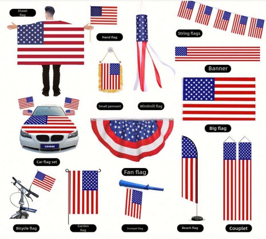 Drapeaux promotionnels personnalisés FT, drapeaux américains, bannières, polyester à double couture, mât en aluminium, pour l'extérieur, fête de l'Indépendance