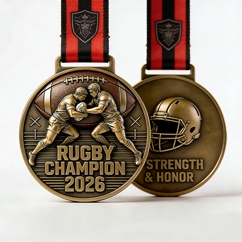 Médaille personnalisée en alliage de zinc pour champion de football américain et de rugby, avec rubans et logo sur mesure – Récompense sportive haut de gamme