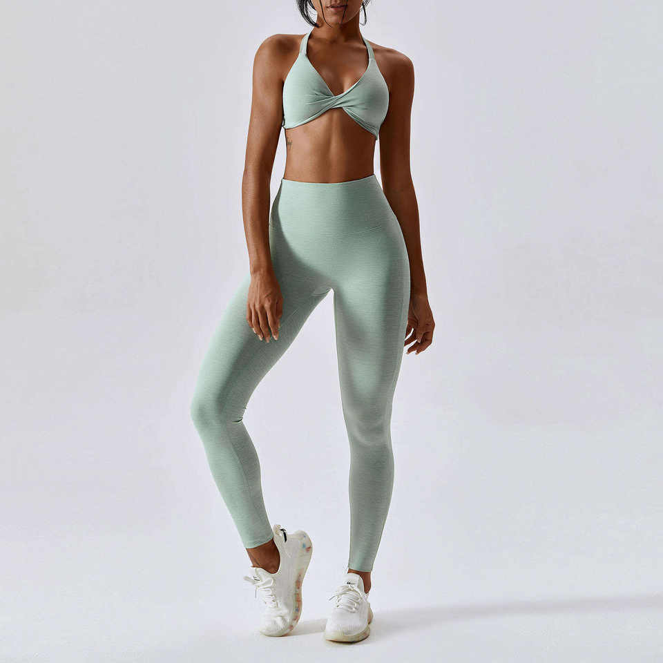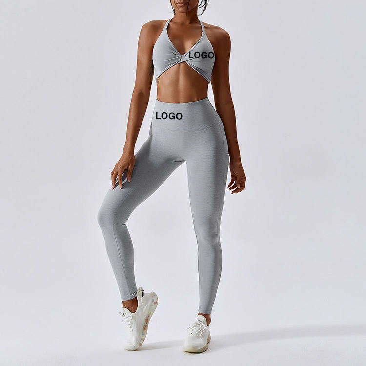 Ensemble de yoga personnalisé, directement de l'usine, en tissu solide, anti-humidité, pour le fitness, avec taille en V et longueur intégrale