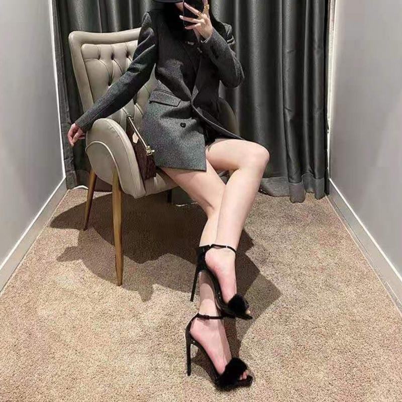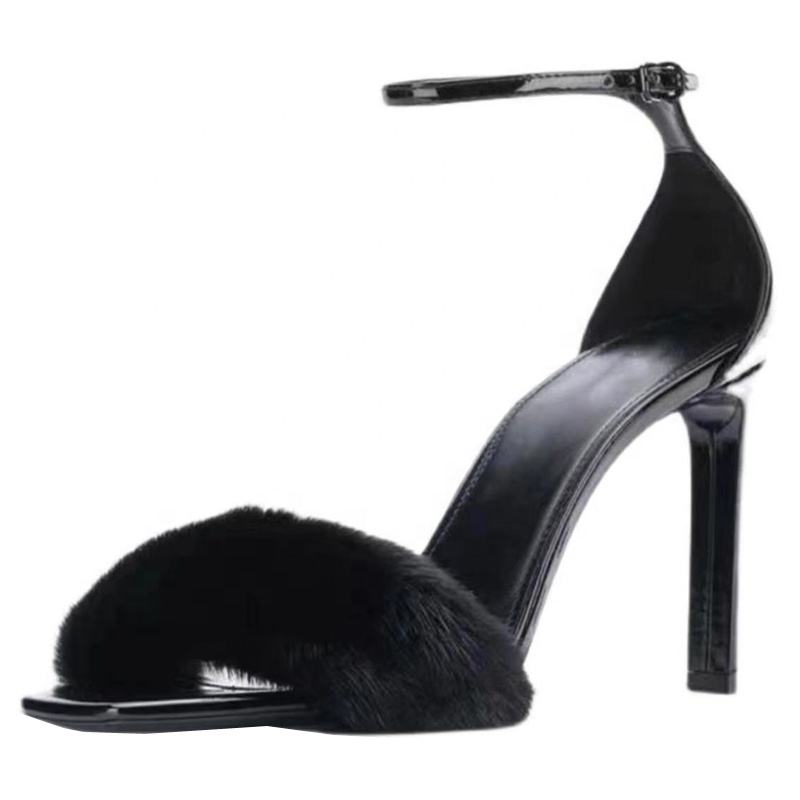 Sandales à talons hauts personnalisées pour femmes, en fourrure, à bout carré, talons aiguilles, pour mariages et soirées d'été, semelle intérieure en caoutchouc EVA