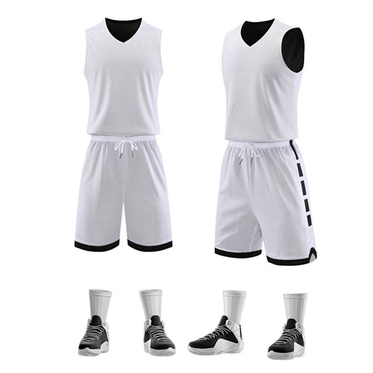 Uniformes personnalisés en jersey de basket-ball double face fabriqués en usine pour les jeunes adultes Logo personnalisé avec numéro de nom en impression