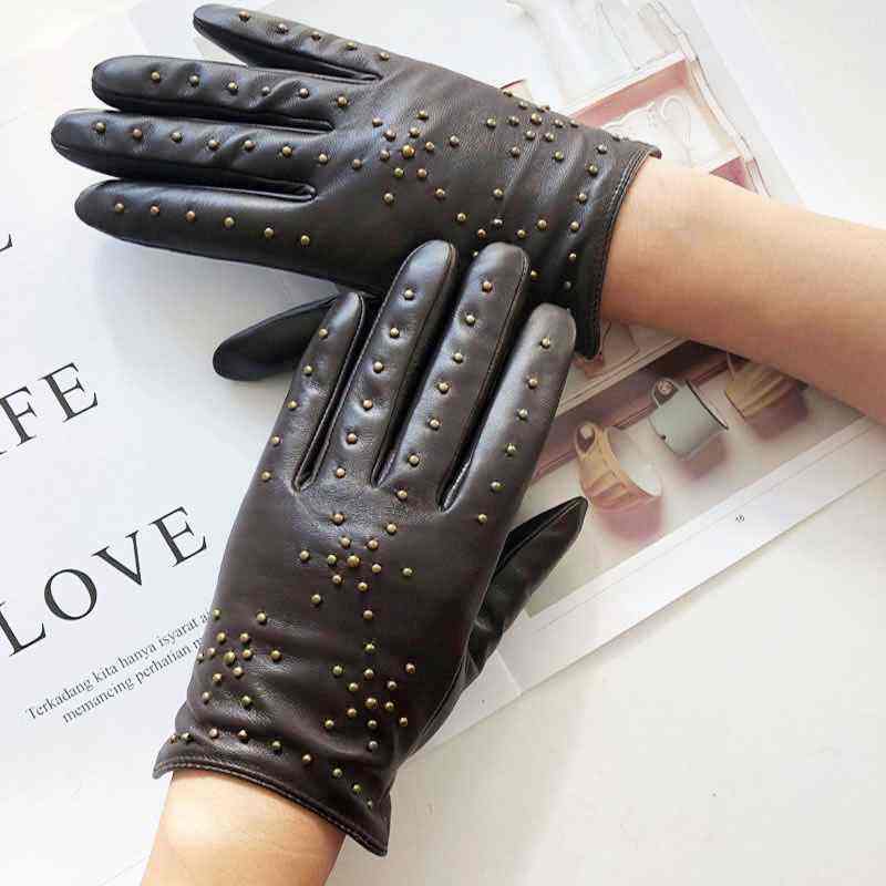 Usine personnalisée nouveau style de gants en cuir à écran tactile rivet vintage respirants et thermiques pour les scènes extérieures et décontractées