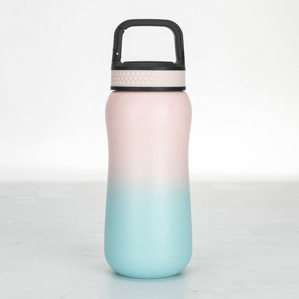 Bouteille isotherme personnalisée de 350 ml, sans BPA, écologique, avec revêtement en poudre couleur dégradée et couvercle de montagne