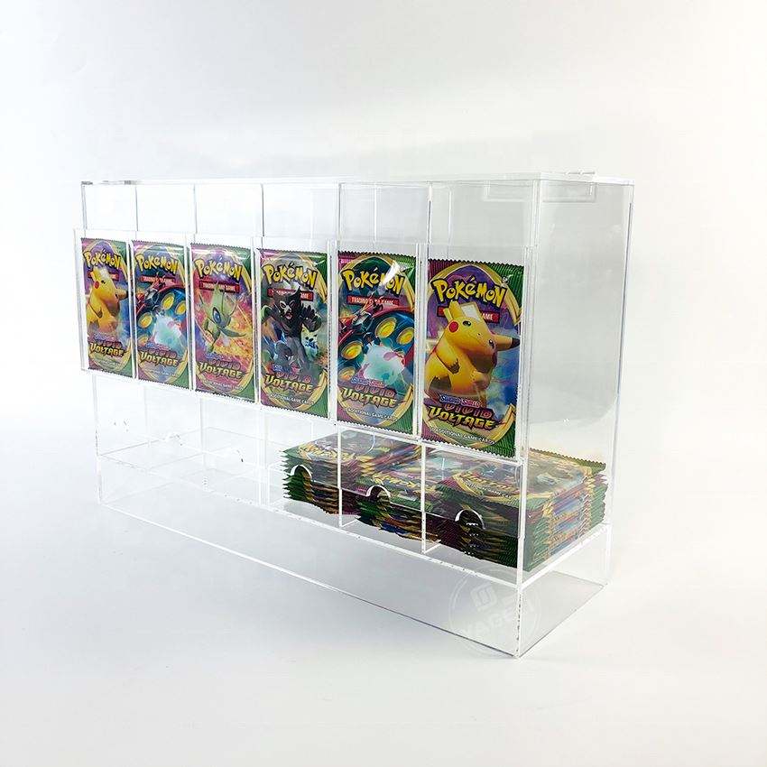Distributeur de paquets de cartes Pokémon TCG en acrylique transparent sur mesure, fabrication en usine, vente en gros, 6 emplacements, épaisseur 3-5 mm, OEM/ODM
