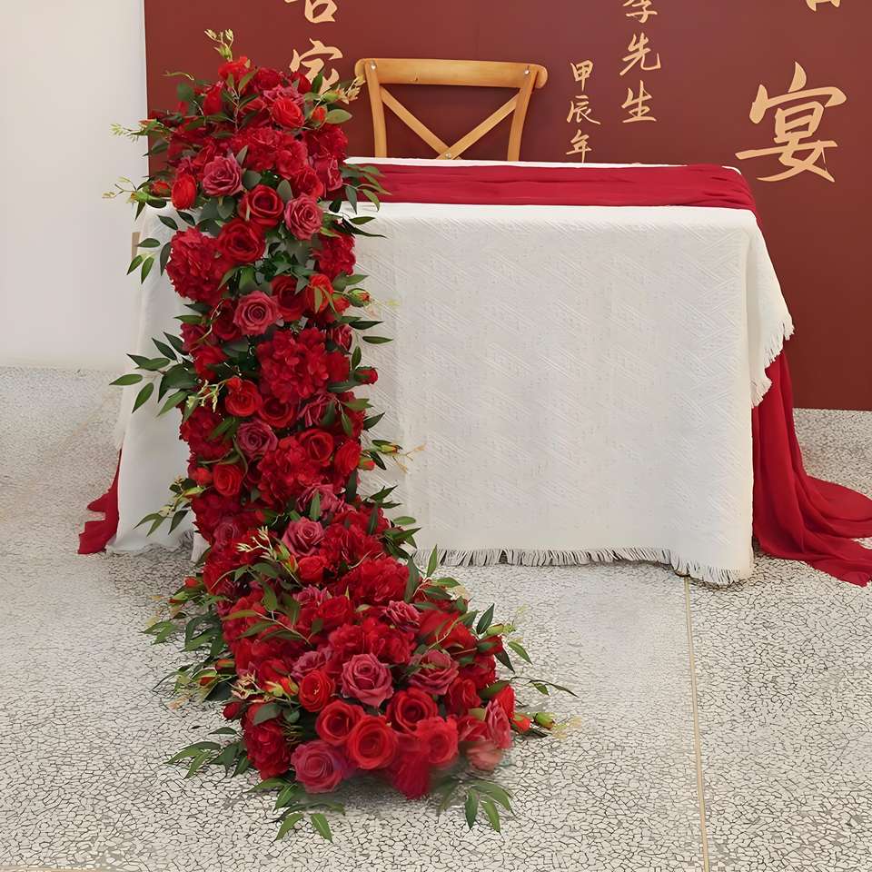Custom Fake Floral Arrangements Aisle Red Rose Table Flower Artificial Silk Flower Aisle Runner for Wedding Decor