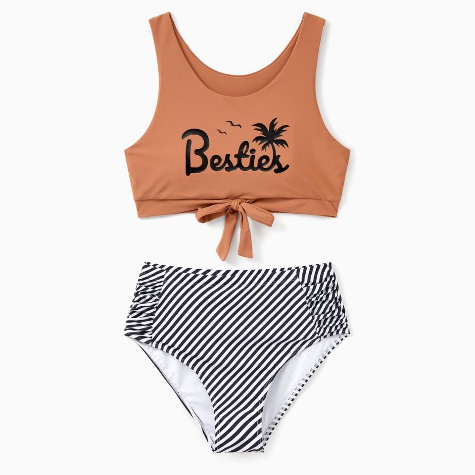 Maillots de bain assortis pour la famille, ensemble bikini deux pièces, imprimé floral, vêtements de plage, maillots de bain pour femmes et hommes, ensemble de 5 pièces