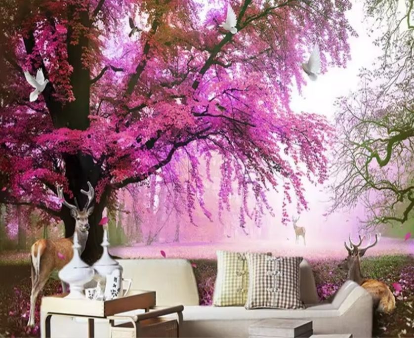 Custom Fantasy Sakura Trees Wallpaper Sika Deer Walls Mural Living Room Bedroom Background Wallpaper