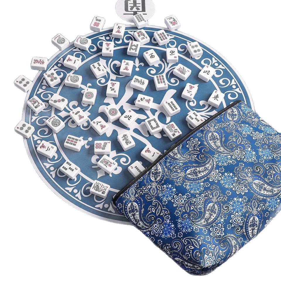 Mahjong pliable de style national, tendance nouvelle, avec fermeture éclair en métal robuste, en velours bleu imprimé, fabriqué en Chine, pour un usage quotidien