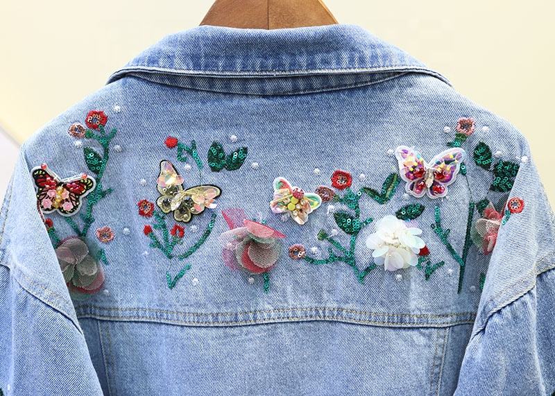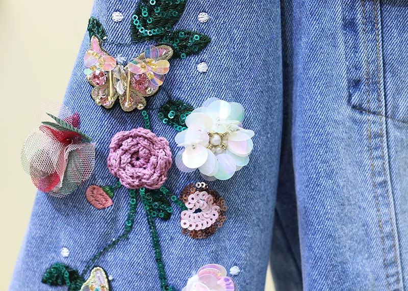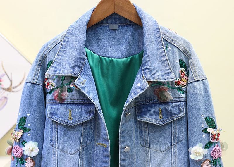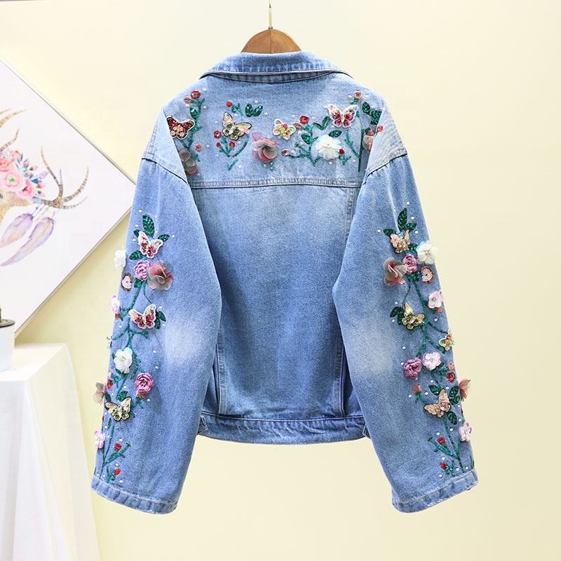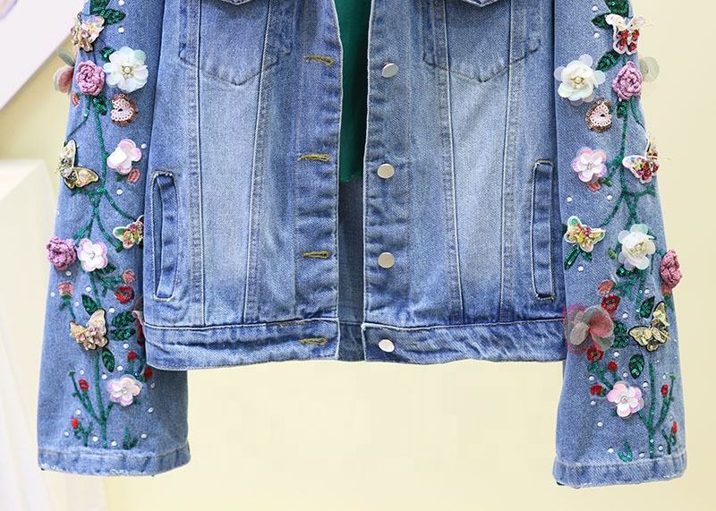 Veste en jean pour enfants de 2 à 12 ans, design de mode personnalisé, avec broderies et patchs à paillettes, motif floral, fabriquée en Chine